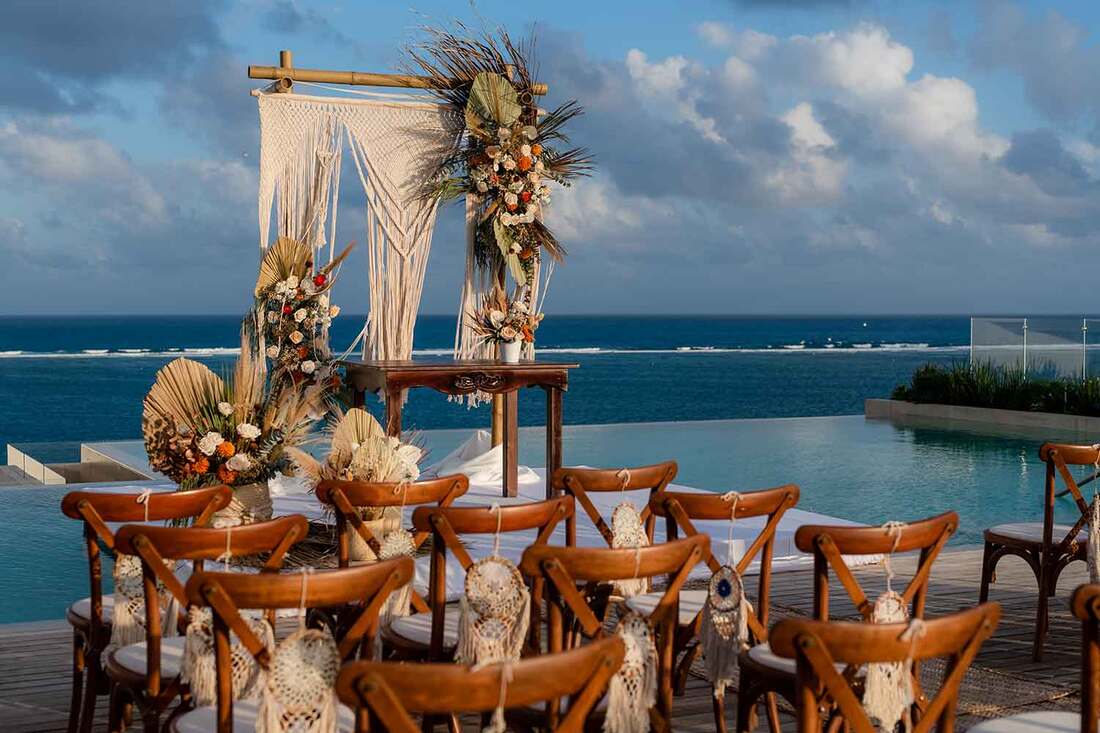 Expert wedding planners at Unico Riviera Maya are skilled at adding bohemian-inspired details such as natural florals, local decor, and dreamy lighting, creating an enchanting and intimate ambiance.