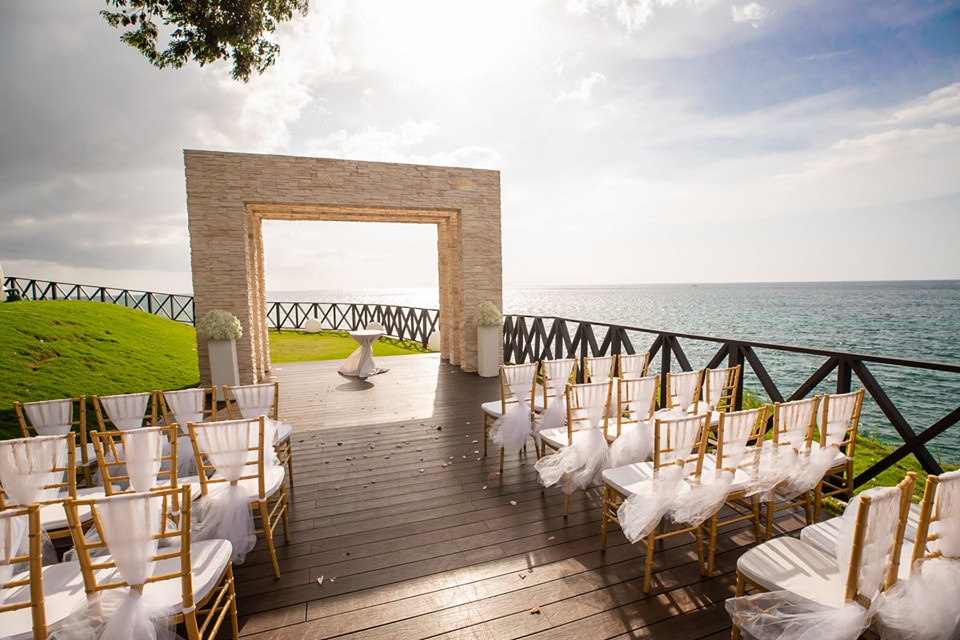 "Hands down, the most popular ceremony location that we have is the Sky Terrace! We don't have the Sky Terrace at all of our Royalton properties, however the Royalton resorts that do have this private rooftop location are always booked first. Not only does the Sky Terrace offer additional privacy for wedding couples, they also have incredible unobstructed views of the ocean and a beautiful stone structure, so no additional décor is needed. There is an additional fee to host a ceremony on the Sky Terrace, but it's well worth it for the views, privacy, and the included décor. For properties that don't have a Sky Terrace, we still see a lot of Beach ceremonies. Many of our couples have always envisioned being married toes in the sand, and nothing can change their minds. Beach ceremonies allow for a lot of customization in terms of structures or chuppah's, seating, and aisle décor!"