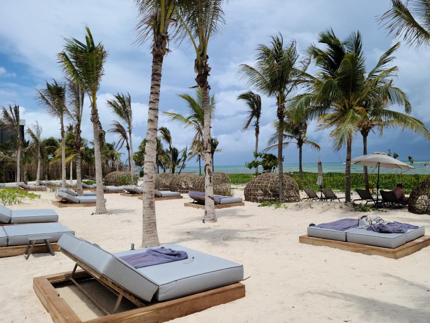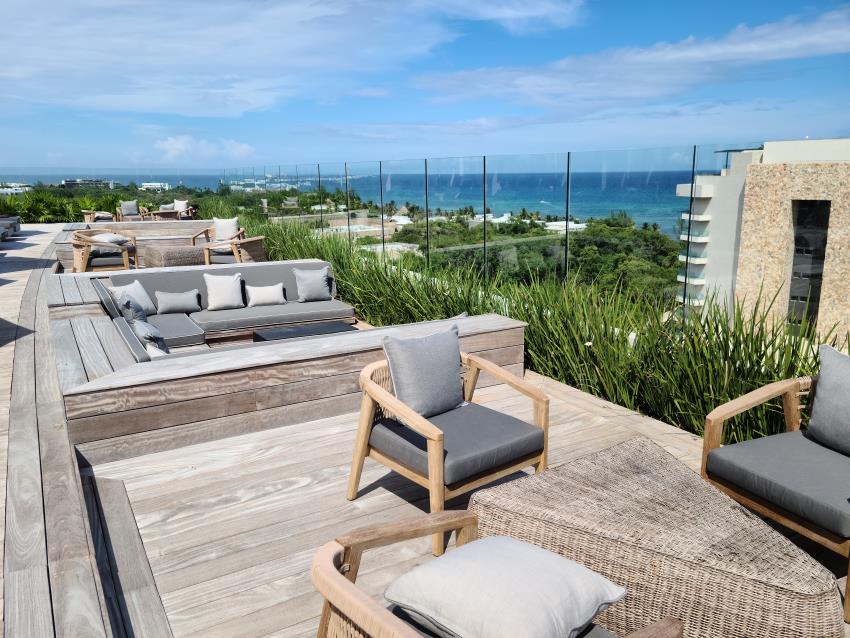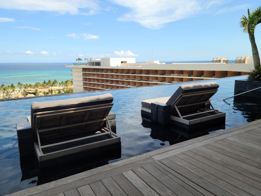 Every room at Secrets Moxché is designed with a modern, earthy flair that feels both stylish and relaxing. We recommend splurging for the Preferred Club. Guests in this category enjoy exclusive access to the Observatory rooftop, complete with its own infinity pool and a private restaurant with panoramic views. Rooms include thoughtful touches like master control panels, a secret room service delivery box, and a tablet loaded with everything you need to know about the resort.