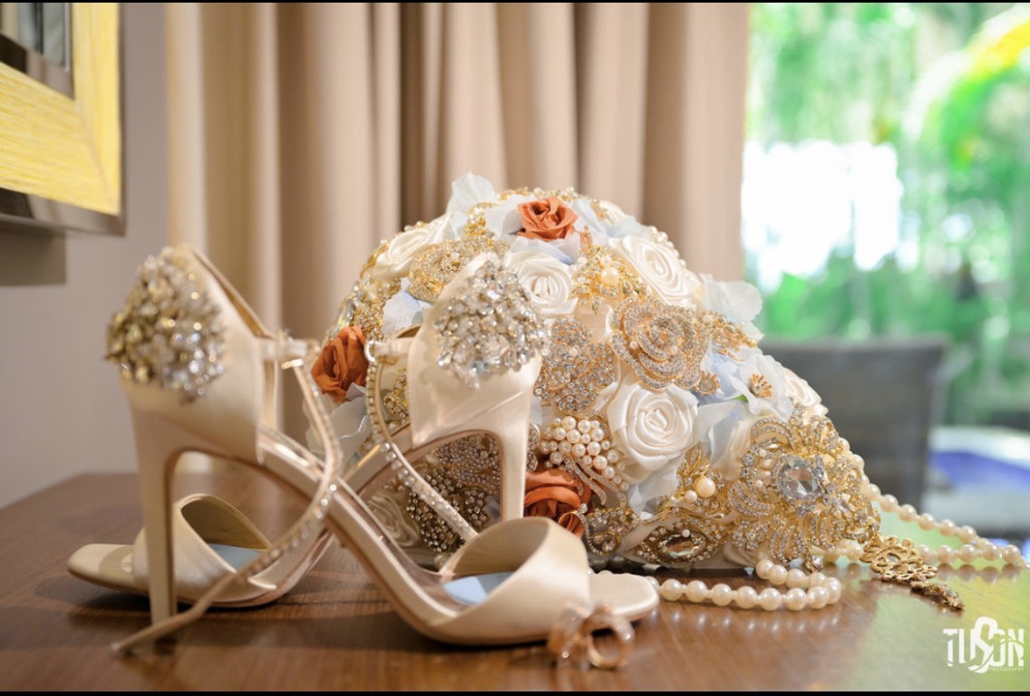 I found my wedding dress at the 3rd wedding dress shop I visited. I had my mom, my God-mom, and my best friend with me. We all knew we found the dress when we all got emotional. I ordered my shoes from Badgley Mischka. My reception dress came from Amazon and my performance dress came from Shein.