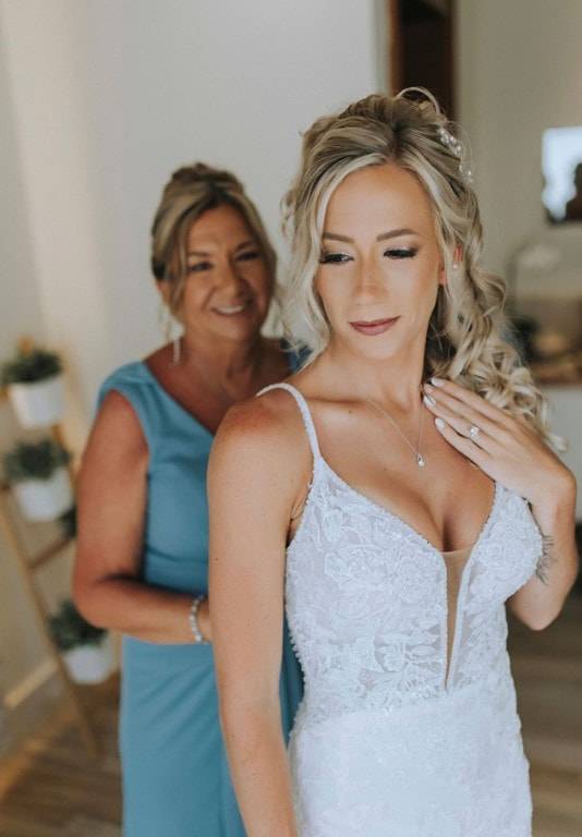 I found my wedding dress at a local bridal store called True Society. I did not go thinking I was going to find a dress that day but the staff was very kind, helpful, and found me the perfect dress. My mother, future mother in laws, sister, and best friend came with me to shop for my dress. I knew a few of them would be honest while others would love everything. Having a few different opinions I knew would be helpful without bringing too many people. When I put on the dress I ended up picking, everyone started crying and stated it was perfect. I was not sure at the time that they were right but trusted their reactions and the fact that everyone agreed. In the end, it was perfect. My fiancé ordered his suit online from The Suit Shop, because we were seeking a very specific blue that we were unable to find at any local suit shops.