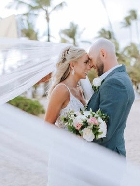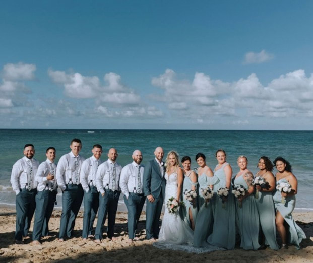We had a ceremony on the beach with a cocktail hour immediately following and the reception immediately following that. The ceremony and cocktail hour were in the same area on the beach and the reception was on the beach next to the ceremony location. This made it easy for guests to get to the required destinations. We had a dinner buffet, dancing, bouquet toss, garter toss, cake cutting, parent dances, and our first dance during the reception. Due to having a destination wedding, our wedding was smaller than it would have been at home, however, we still had over 60 guests attend. Having it at a destination which required a passport, made us feel extremely lucky that we had so many guests willing to attend our special day. Knowing the sacrifices they made to attend made seeing them there very heartwarming and emotional for us. We felt extremely loved and were blessed to have so many guests. Since the wedding, we have had many guests say that our wedding was the best wedding they have been to. Some of our married guests stated they were glad they already got married because they wouldn’t be able to top ours. We all had so much fun and everyone seemed to enjoy themselves with sand on their feet.
