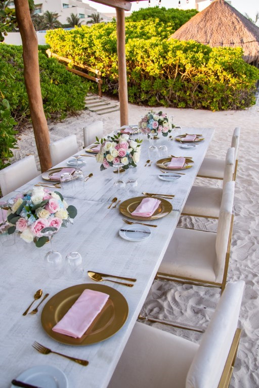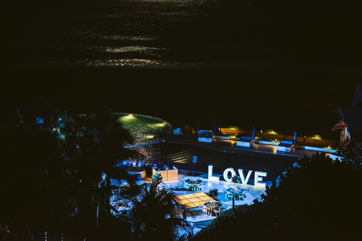 Live Aqua Cancun’s wedding packages include a beautifully decorated wedding altar or gazebo with draping and floral accents, an aisle runner, white Avant Garde chairs, basic set decoration but of course, additional decorations can be rented to personalize the look of your event. As well, you don't even have to choose a wedding package! You can create a customized wedding quotes capturing your one-of-a-kind wedding vision. A common question we see is about a resort’s preferred vendors- good news here! Live Aqua offers at least three options per service, giving the couple the freedom to choose the best fit for their needs.